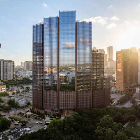 In the Large-Scale For-Profit Category*, the 2025 award went to Norton Rose Fulbright Tower. Norton Rose Fulbright Tower is a 28-story, 387,700-square-foot Class A office building overlooking one of downtown Houston’s most celebrated and iconic parks, Discovery Green. Part of a three-block master plan the tower features amenities made for Texas weather including multiple terraces that pull the park up into the building. With a unique side-core design, expansive floor plate and LEED Platinum mechanical system, the Norton Rose Fulbright Tower has set a new standard for Houston architecture and office life.