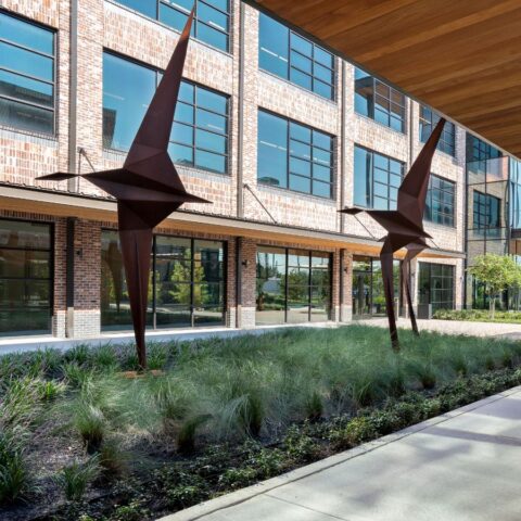 The Center for Pursuit’s campus is prominently situated in East Downtown, an emerging community within a historically industrial neighborhood. With a mission to promote choice, growth and independence for people with intellectual and developmental disabilities, it was important that the nonprofit integrate itself into the community in order to foster greater acceptance for its clients. Comprised of three buildings framing a public green space and a private outdoor terrace, the campus architecture reflects EaDo’s artistic warehouse vibe by blending reclaimed brick from the previous facility with modern elements, including sculptures and graffiti walls. Large exterior windows were used in each building to encourage transparency from the inside out, furthering the organization’s commitment to creating a welcoming environment for its clients.